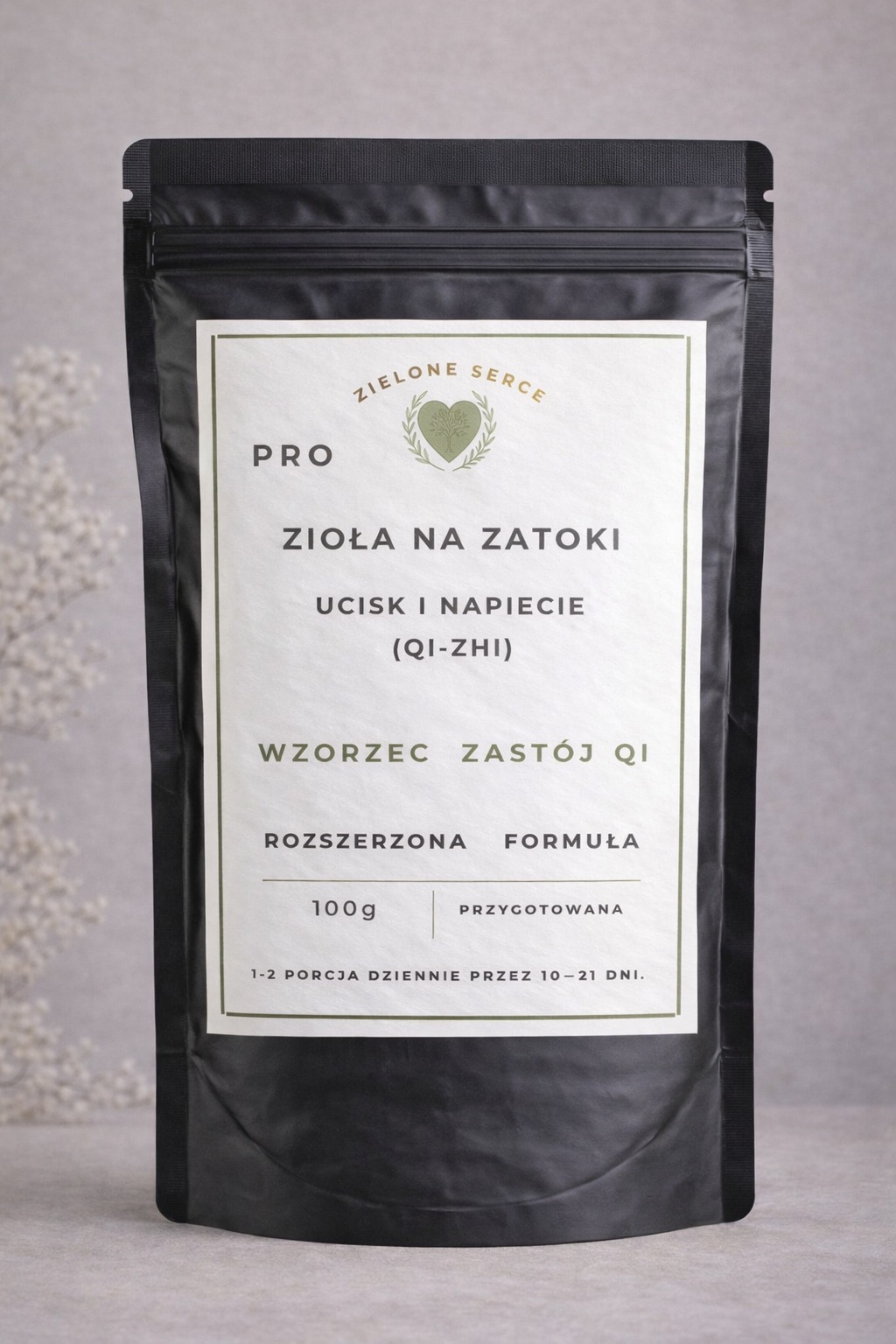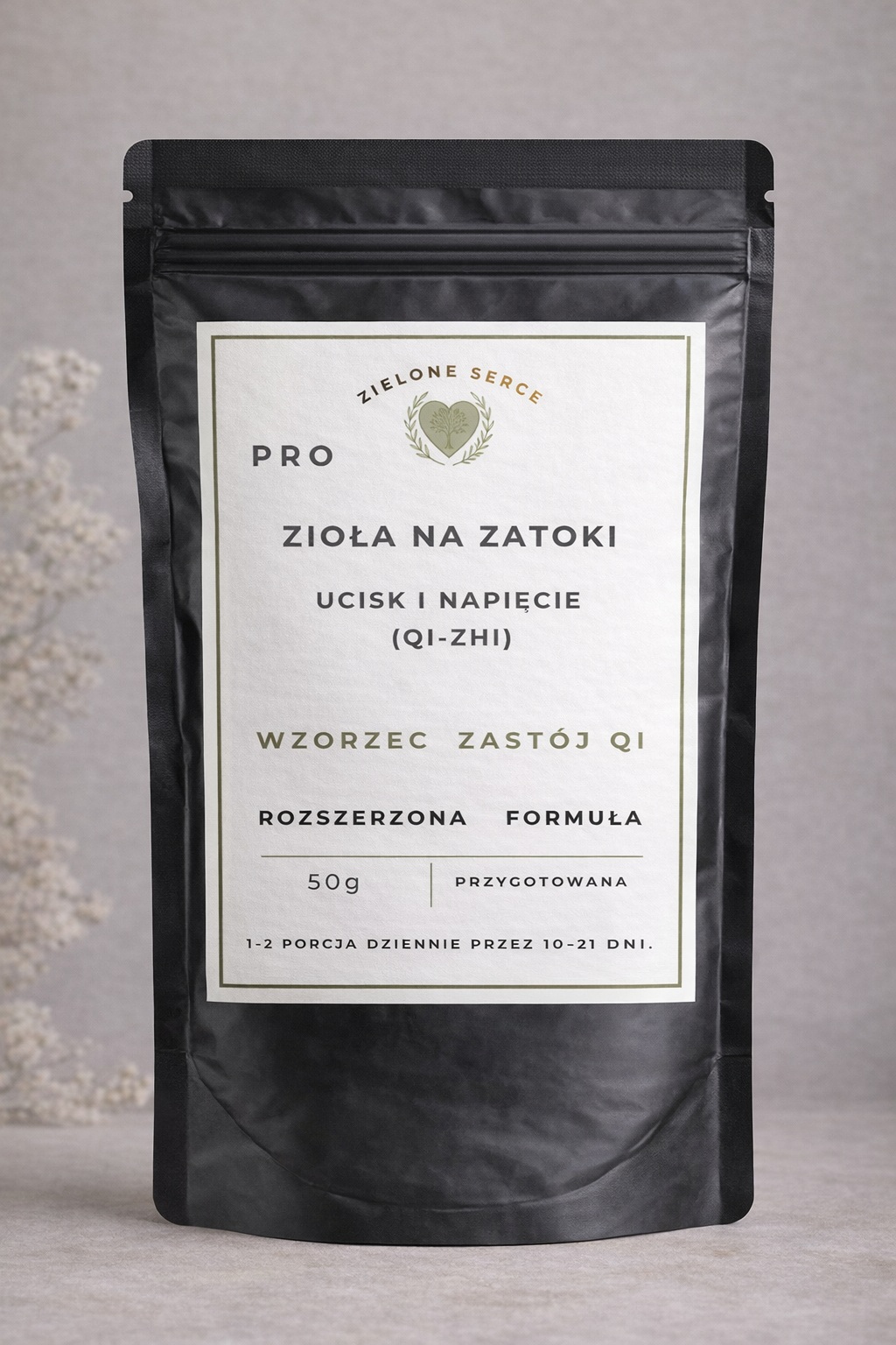 Pro Zioła na zatoki – ucisk i napięcie – rozpraszające zastój (Qi Zhi) to rozszerzona formuła opracowana dla osób, u których dominują objawy napięcia, ucisku i zmiennego przebiegu dolegliwości zatok.