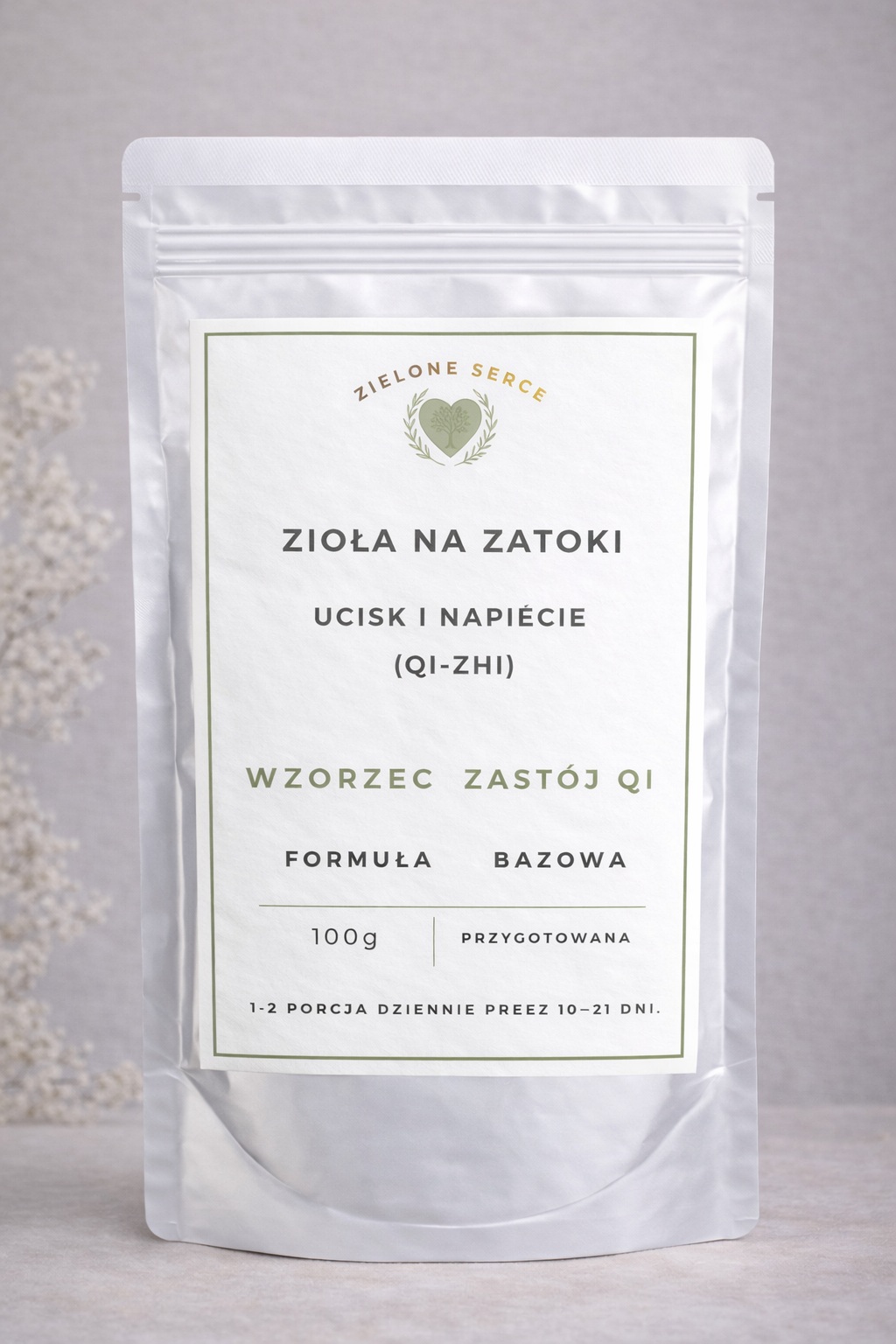Zioła na zatoki – ucisk i napięcie – rozpraszające zastój (Qi Zhi) to bazowa mieszanka opracowana dla osób, u których dominuje uczucie ucisku, napięcia i zmiennych dolegliwości w obrębie zatok – bez wyraźnego zalegania śluzu.